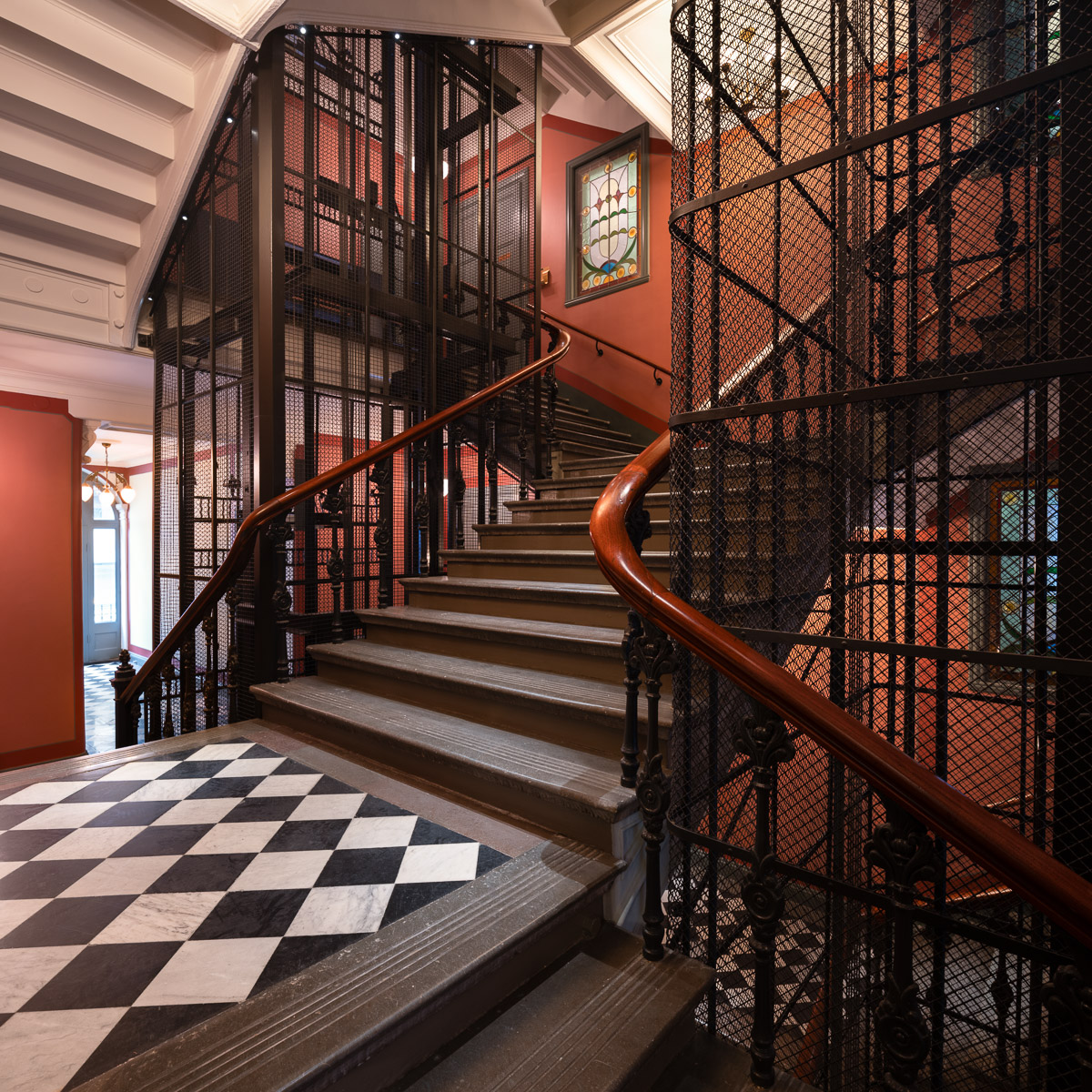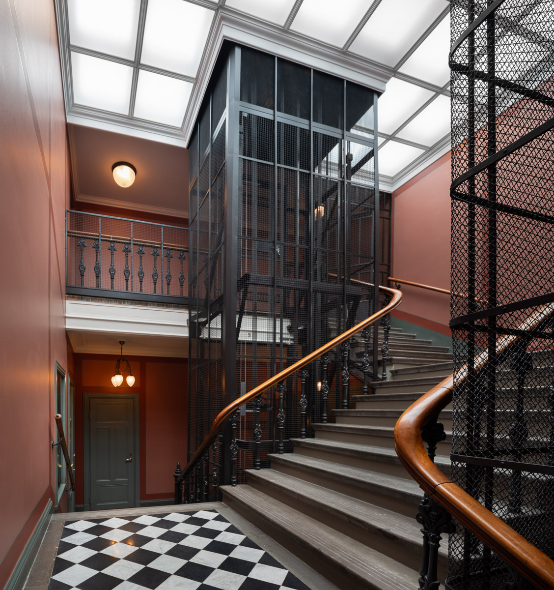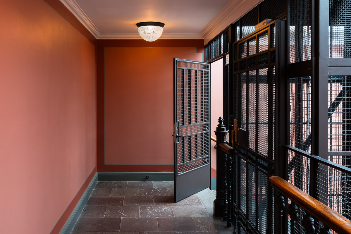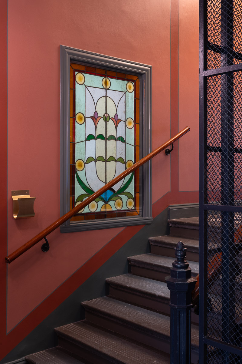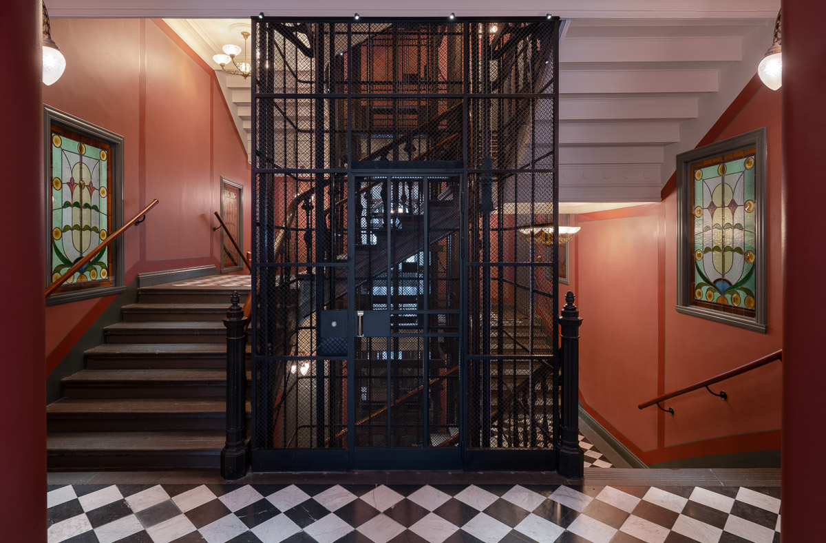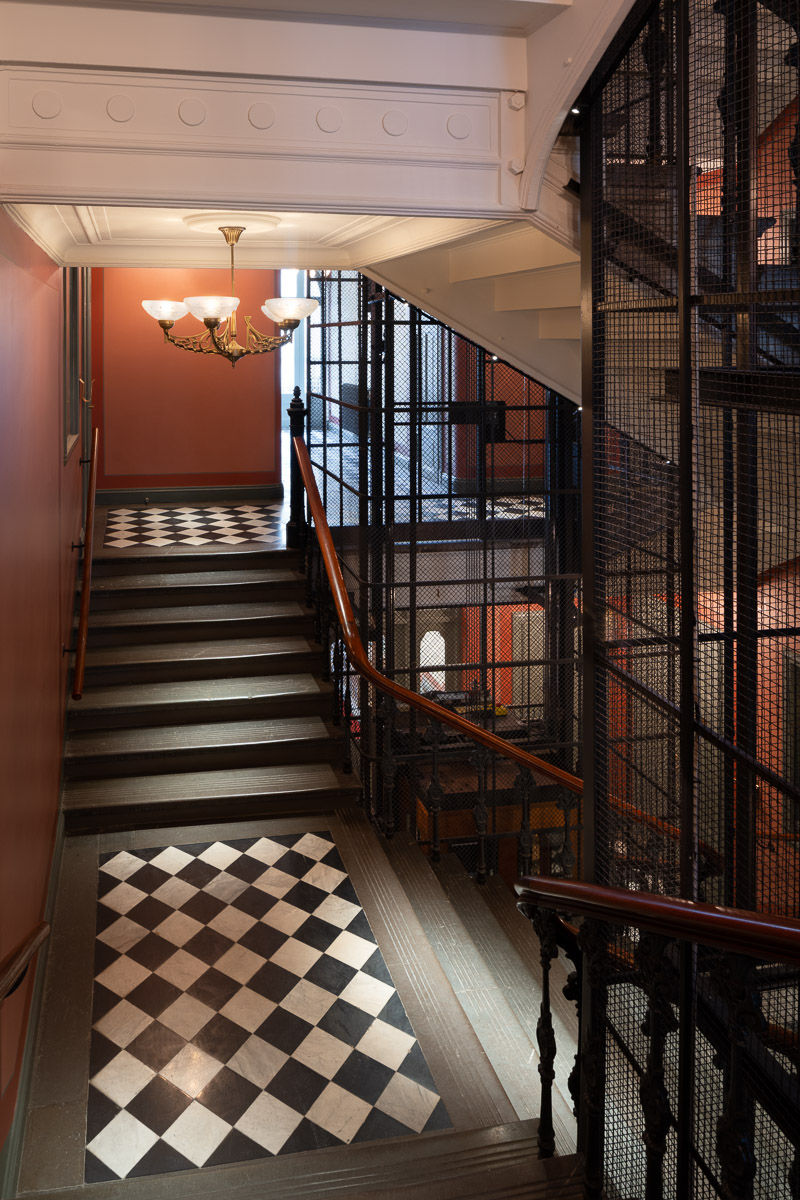 Resultatet är ett trapphus där 140 år av byggnadshistoria inte bara bevaras utan även förstärks och görs synlig för boende och besökare.